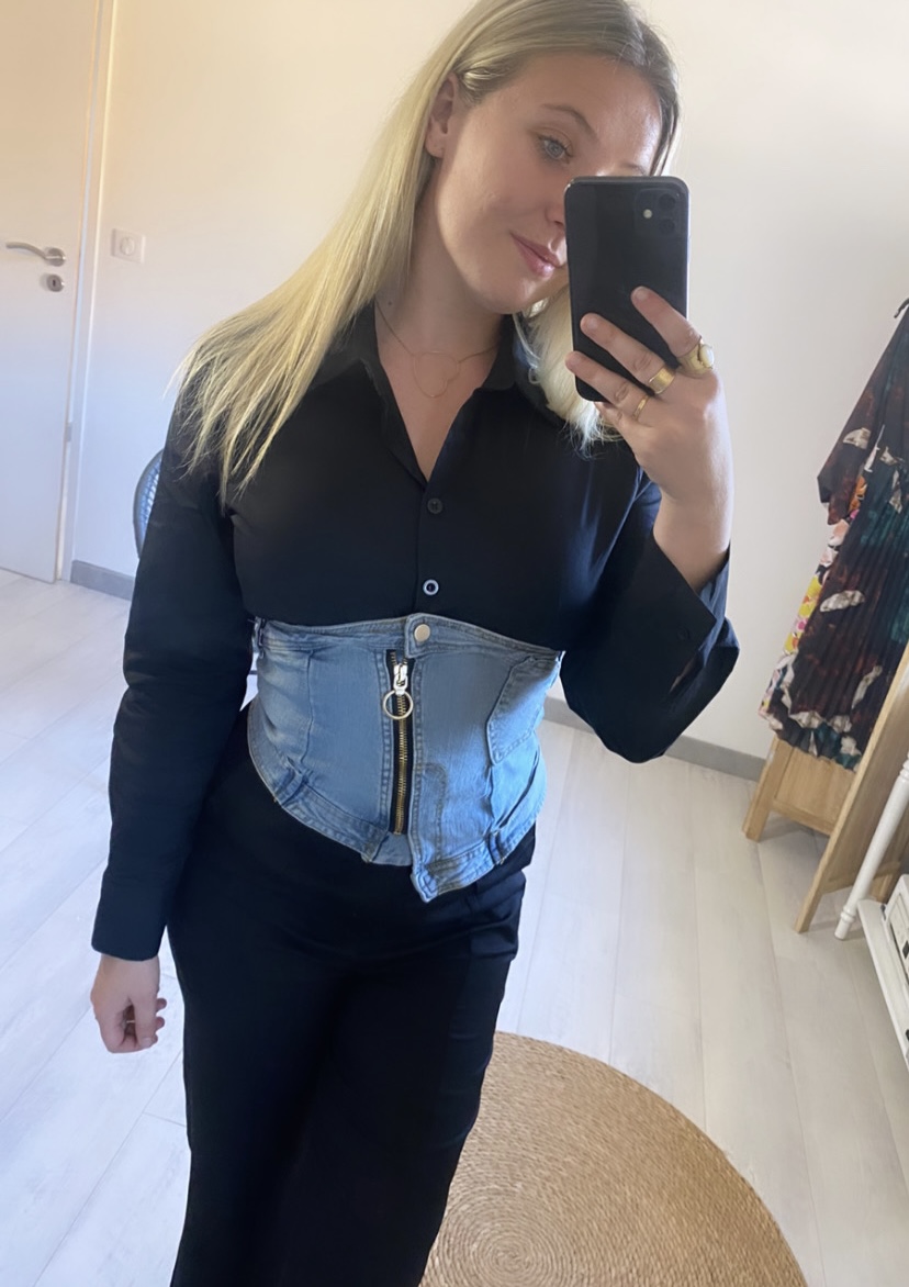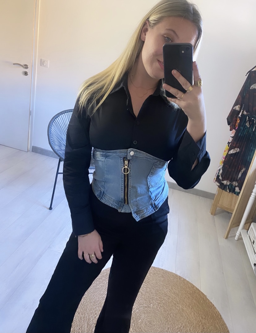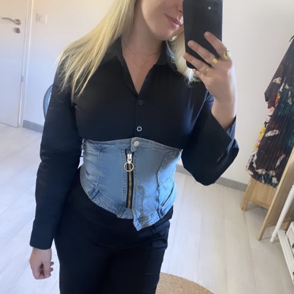 chemise semi jeans , tissu jeans elastique