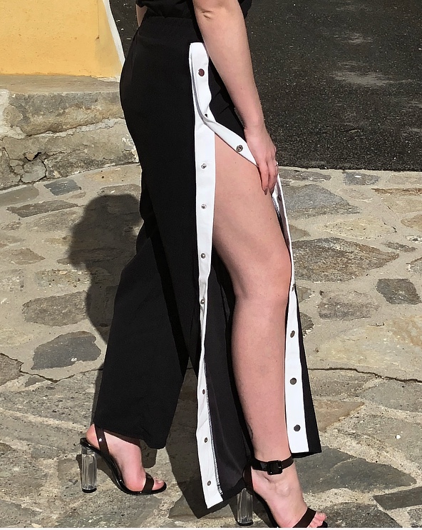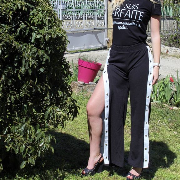 Pour un style décontracté avec un style top Bandes blanches Boutons pressions