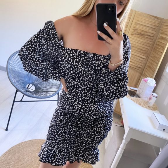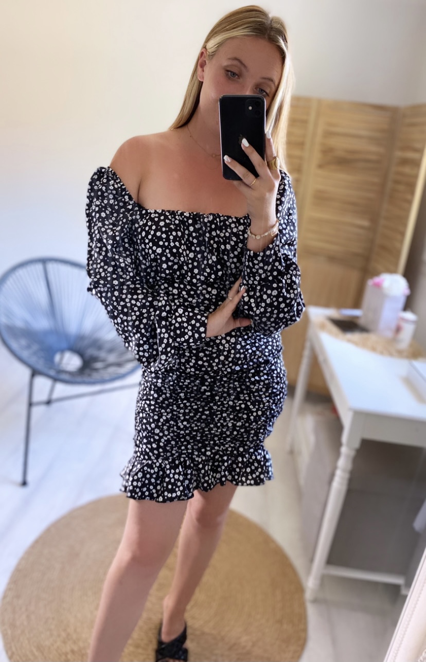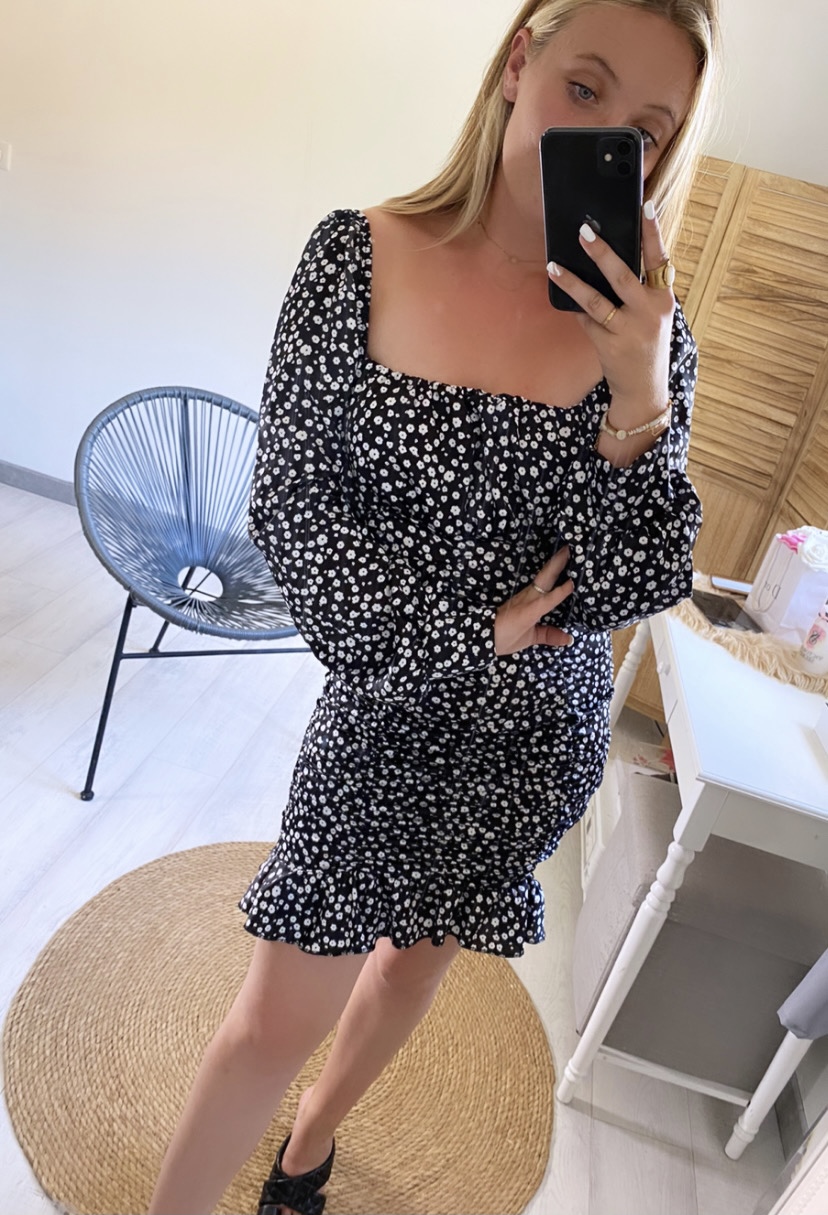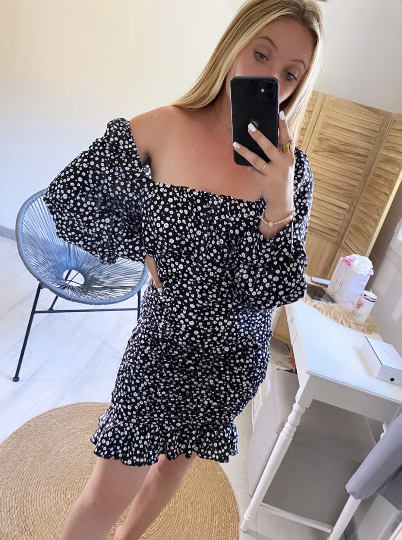 Robe fleurie satinée possibilité de porter en 2 façons
