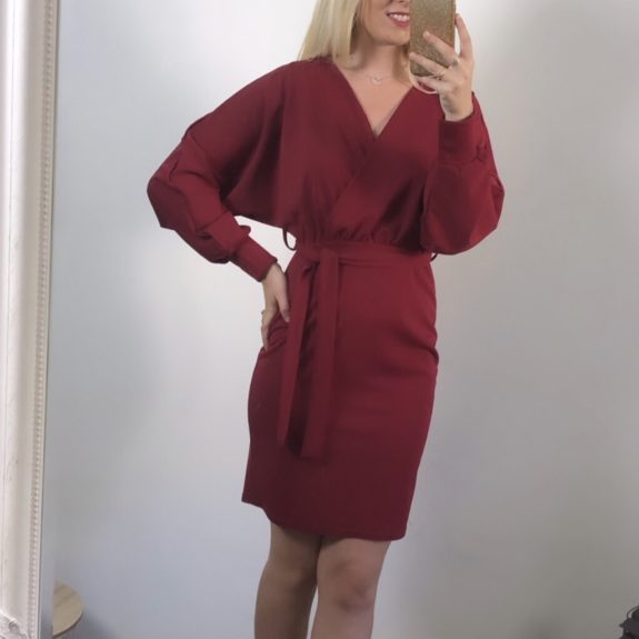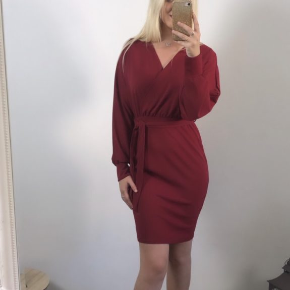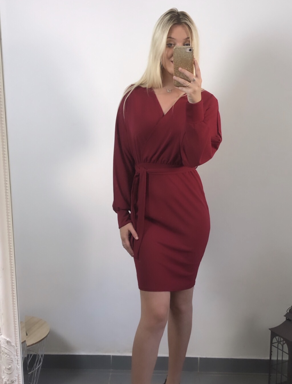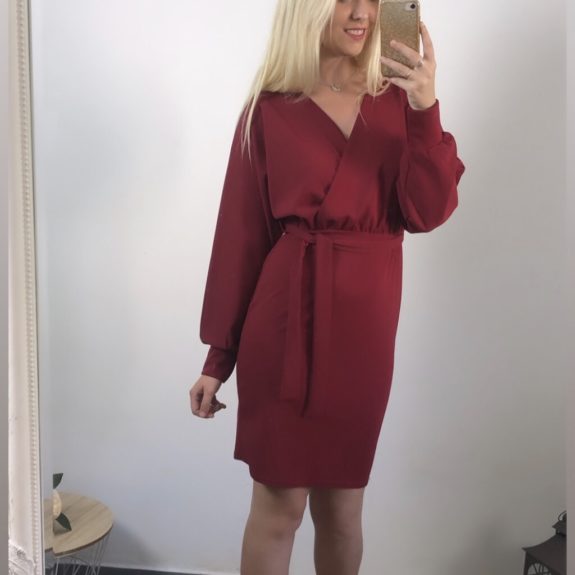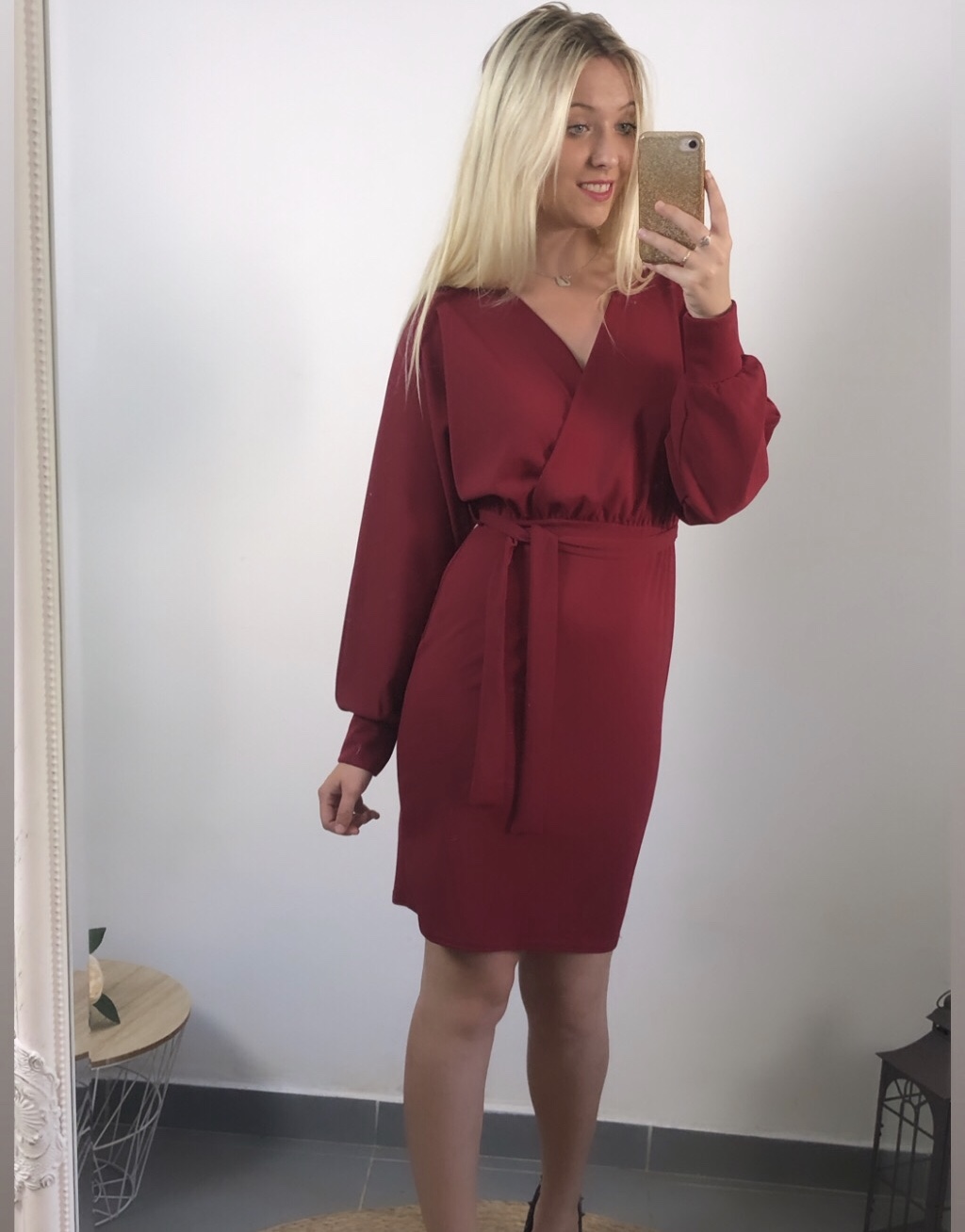 Robe portefeuille bordeaux à manches longue avec ceinture