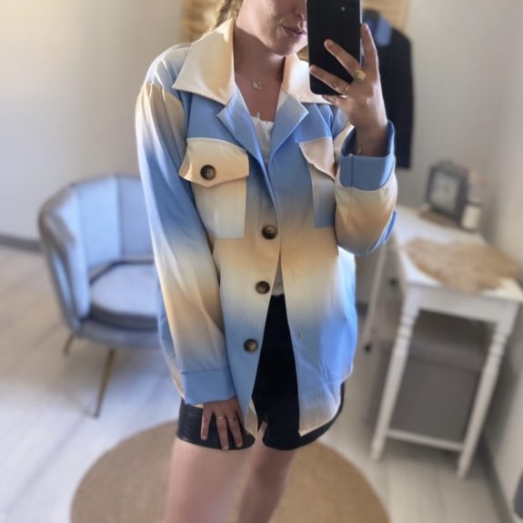Veste chemise bleu & beige