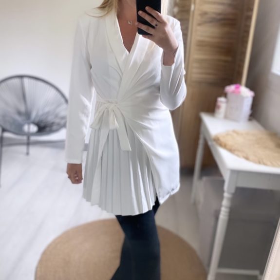 Veste robe blanche plissée