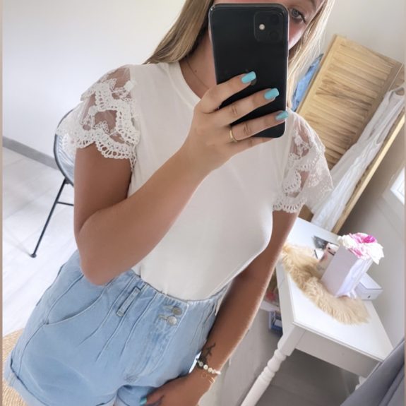 Top manches en dentelle